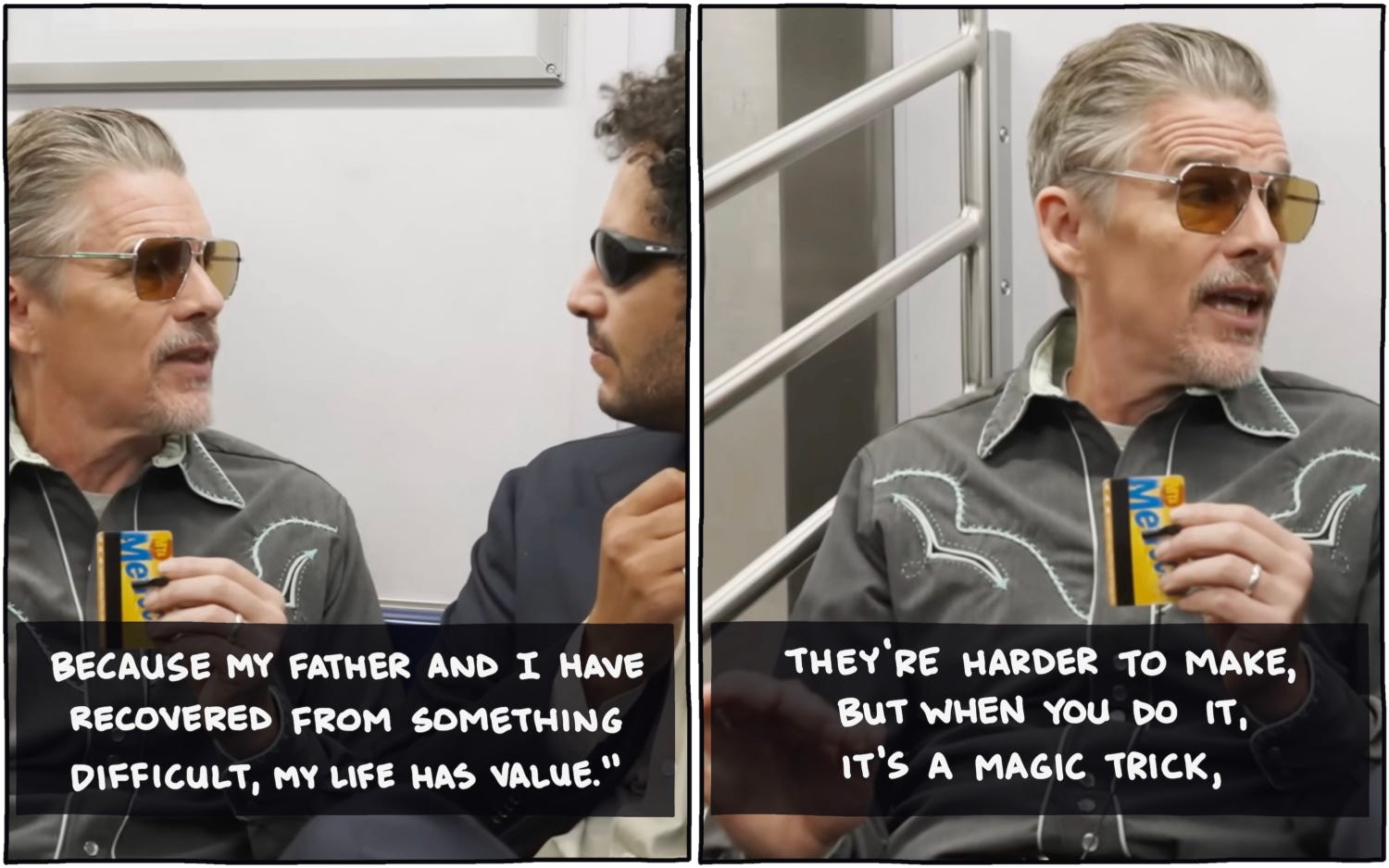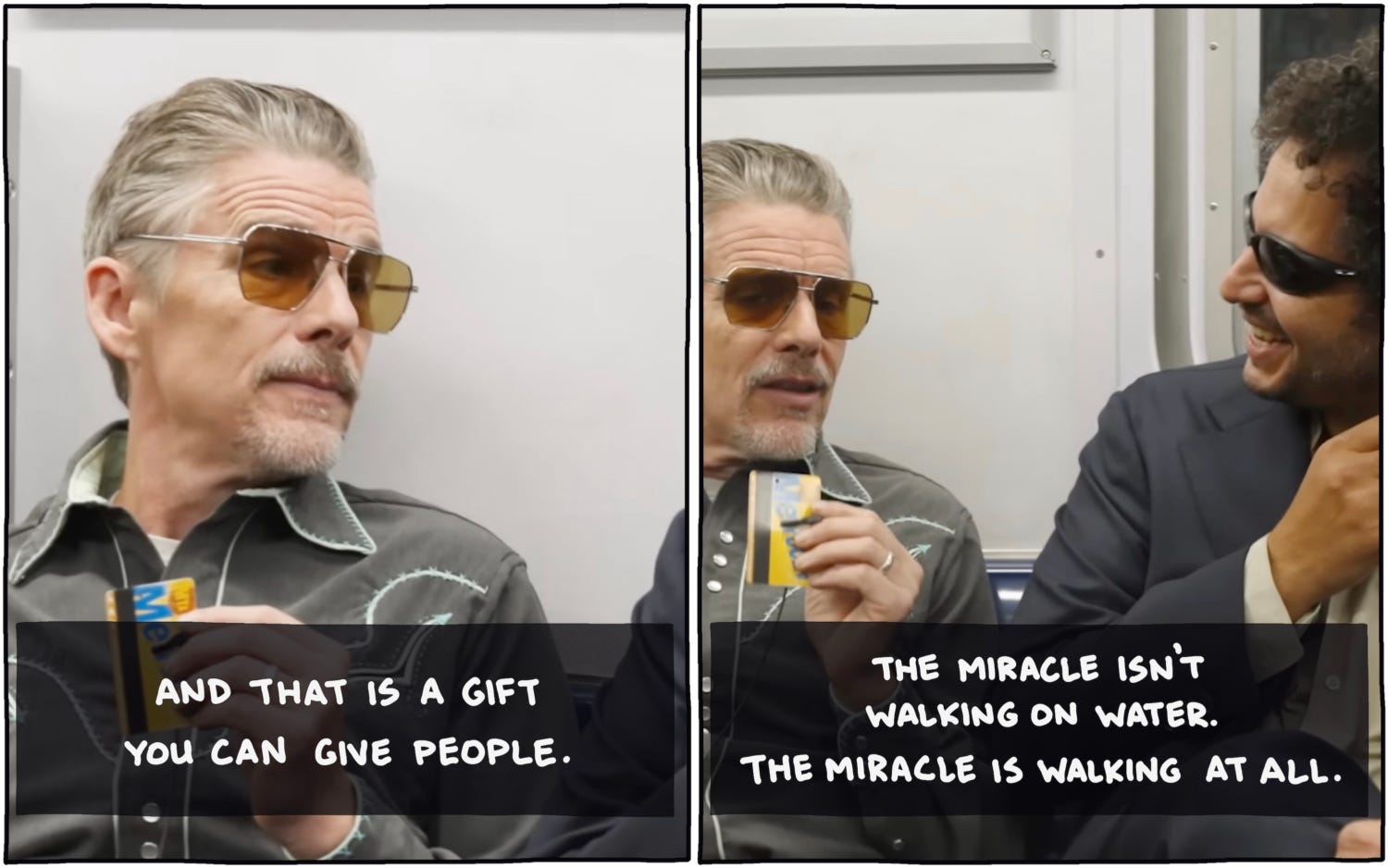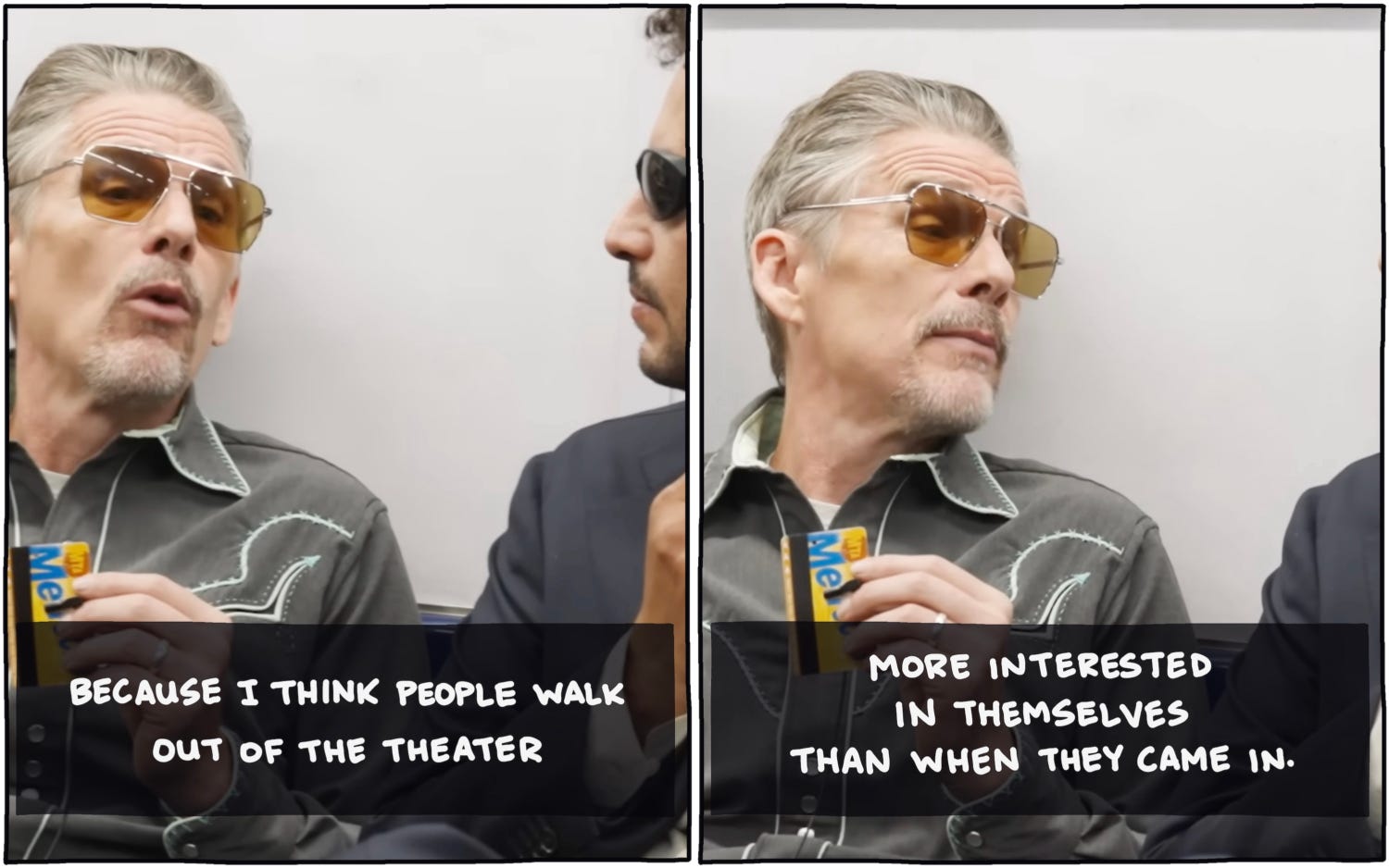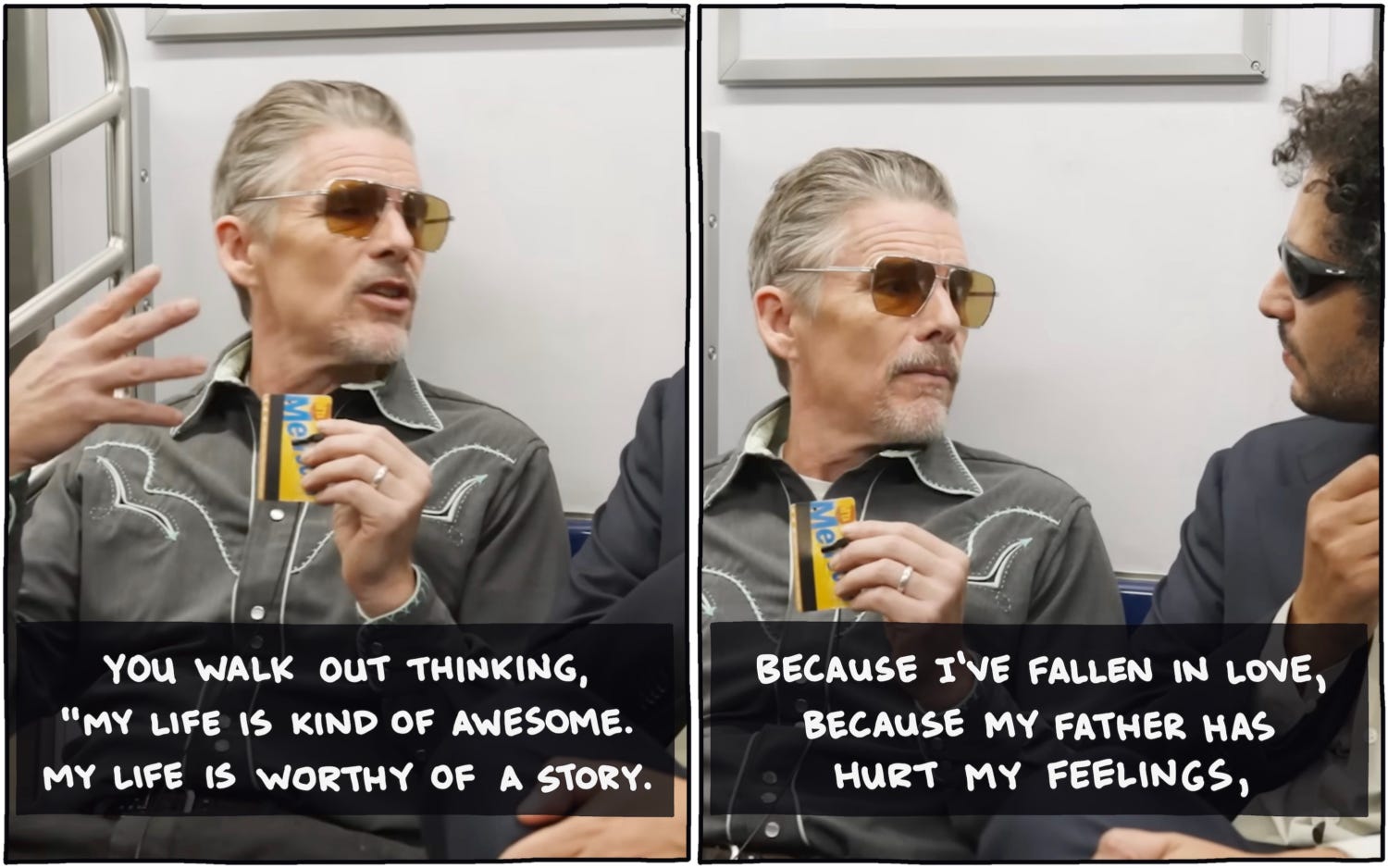 Related to that: I took a series of screenshots from Ethan Hawke’s interview on Subway Takes to try to explain why I teach writing workshops (including, of course, this year’s workshop, which has a few spots left):